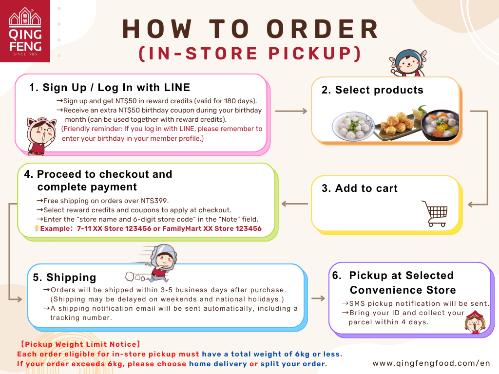 If your order exceeds 6kg, please choose home delivery or split your order into multiple shipments.