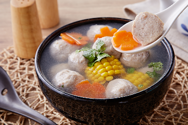 羹湯良伴。台灣經典羹湯食材。精選豬肉製成,豬肉貢丸的口感。可搭配湯品、麵食、便當或做為蔬菜料理配料。