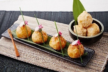 嚴選上等魚漿,混合魷魚碎肉與飛魚卵,打造多層次海味口感。油炸後外酥內Q,口感鮮明。每一口都能感受到飛魚卵在口中啵啵作響。